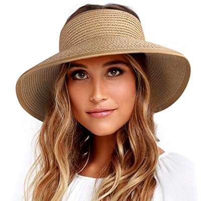 FURTALK Sun Visor Hats for Women Wide Brim Straw Roll Up Ponytail Summer Beach Hat UV UPF 50 Packable Foldable Travel