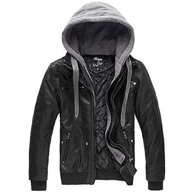 Wantdo Men’s Faux Leather Jacket with Removable Hood