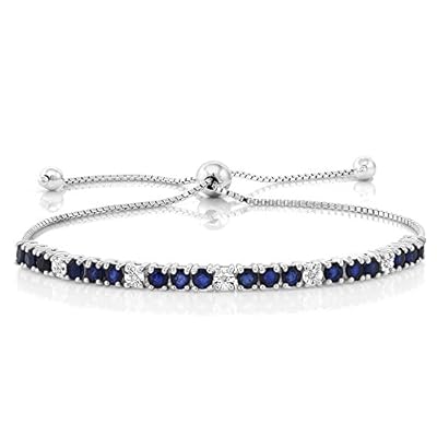 Gem Stone King Sterling Silver Blue Sapphire and White Diamond Tennis Bracelet Jewelry for Women’s 2.05 cttw Fully…