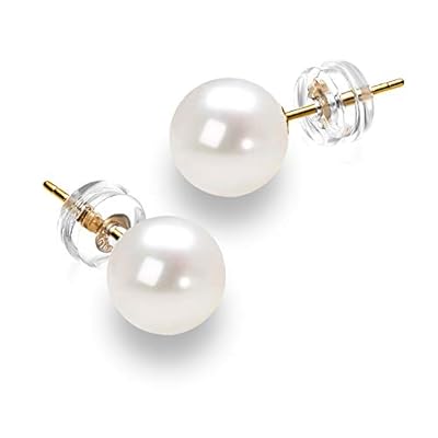 PAVOI 14K Gold AAA+ Quality Round White Cultured Akoya Pearl Earrings for Women