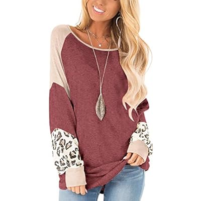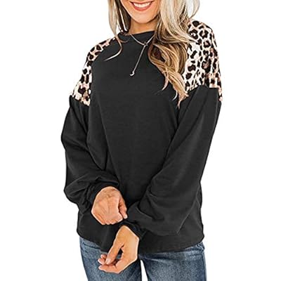 Womens Leopard Print Long Sleeve Shirts Fall Casual Crewneck Color Block Tops Sweatshirts
