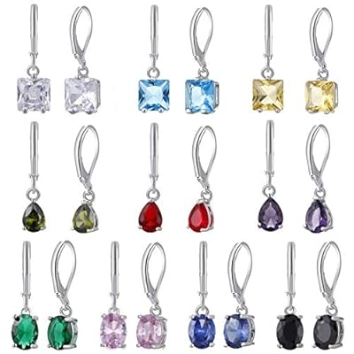 10 Pairs Silver CZ Charms Leverback Drop Earrings Set, Sparkling Cubic Zirconia Small Hoop Ear Jewelry, Hypoallergenic Crystal Dangle Earrings Gifts for Women Girls