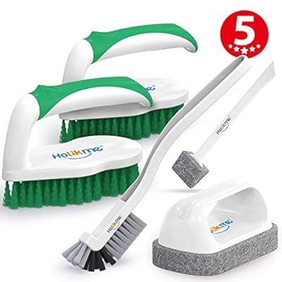 Holikme 5 pack Deep Cleaning Brush Set,Scrub Brush&Grout and Corner brush&Scrub pads with Scraper Tip&Scouring pads,for bathroom,Floor, Tub, Shower, Tile, Bathroom and Kitchen Surface(Green)