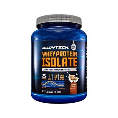 BodyTech Whey Protein Isolate Powder with 25 Grams of Protein per Serving BCAA’s Ideal for Post Workout Muscle Building and Growth, Contains Milk and Soy, Cinnamon Cereal Flavor (1.5 Pounds)