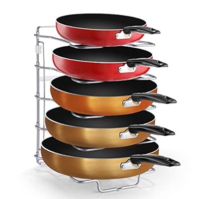 Simple Trending Adjustable Pan and Pot Lid Organizer Rack Holder, Kitchen Counter and Cabinet Organizer, Silver