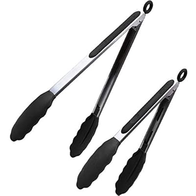 Riveira Tongs for Cooking with Silicone Tips | 9 and 12-Inch Pieces Set | Non-Stick Kitchen Grill Tongs | BBQ Grilling Tong | 550°F High Heat-Resistant Premium Silicone Tips | 304 Stainless Steel