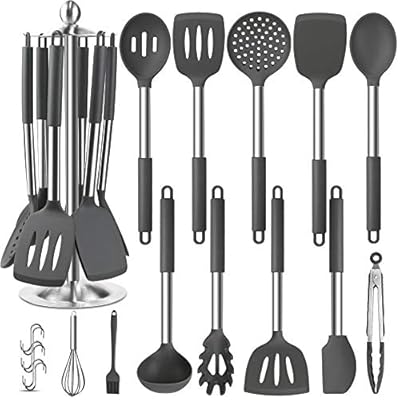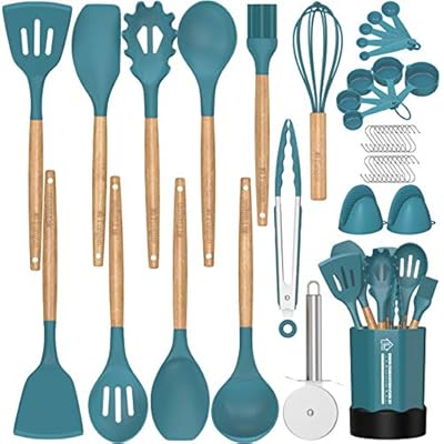 Silicone Cooking Utensils Set, 31pcs Kitchen Utensils Set, Heat Resistant Non-stick Silicone Utensil Set with Stainless…