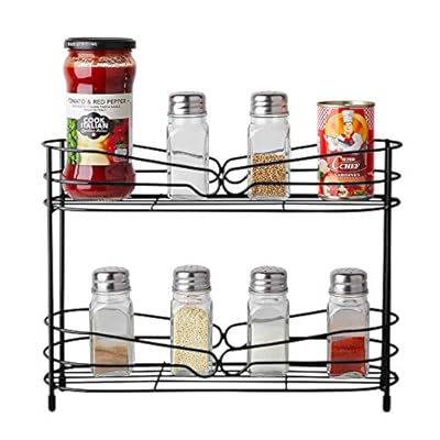 Spice Racks Organizer for Countertop, 2 Tier Kitchen Counter Seasoning Storage Shelf with Shelf Liner, Bathroom Standing Rack for Cabinet, Black