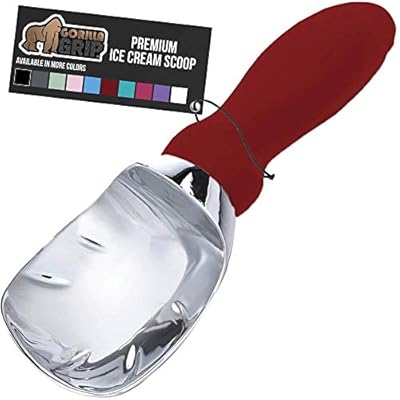 Gorilla Grip Premium Ice Cream Scoop, Dishwasher Safe Scooper with Comfortable Easy Grip Handle, Heavy Duty Durable Design, Professional Kitchen Tool for Stuffing, Cookie Dough, Sorbet, Red