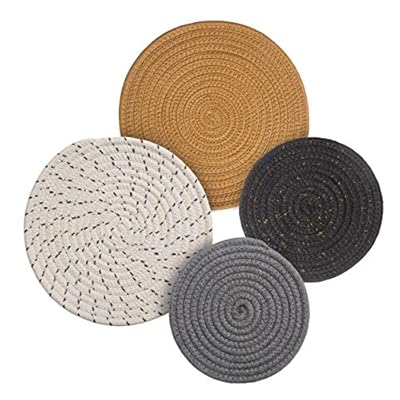 Potholders Set Trivets Set 4pcs 2 Sizes 7 Inches & 9 Inches Diameter 100% Eco Pure Cotton Thread Weave Trivets for Hot Pots and Pans | Kitchen Trivets for Hot Dishes Hot Pot Holders (Touch of Glam)