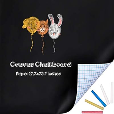 Coavas Chalkboard Sticker Paper Self-Adhesive Peel and Stick Wall Stick Paper Black Board Wall Sticker for Kids Home Office Homeworking 5 Coloured Chalks 17.7×78.7 Inches