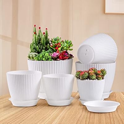 Plant Pots-Planters Set of 6 Flower Pots for Indoor Plants with Saucers,7/6/5.5/5/4.5/4 Inch with a 3.5 Inch【Free of Cost】 Modern Decorative Nursery Pots Indoor Planter with Drainage Holes【White】