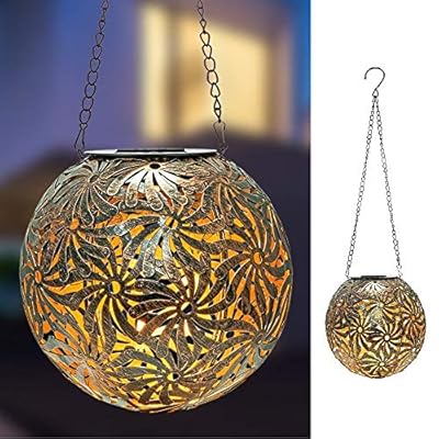 Hanging Solar Lantern Lights Outdoor Decorative for Garden Yard Patio Porch. Hanging Garden Decor Solar Powered, with Hanging Chain and Hook. (Lantern Light B)