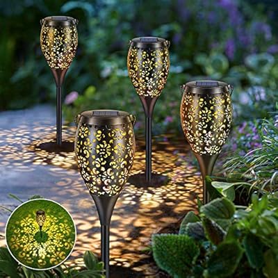 Solar Lights Outdoor 4-Pack, Garden Solar Hanging Lantern Waterproof Solar Pathway Light Metal Solar Powered LED Landscape Lighting Decorative Solar Yard Stakes, Torch Light for Patio Driveway Lawn