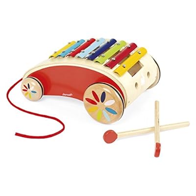 Janod Tatoo Xylo Roller – Musical Rolling Wooden Xylophone Pull-Along Toy – Encourages Creativity and Motor Skills – 18 Months