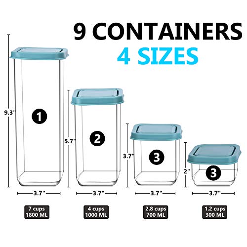 【9 Pack Food Storage Containers】 Our kitchen storage containers set comes 9 pieces in 4 different sizes. Includes 1 tall container (1.9 qt/1.8L), 2 medium containers(1.1 qt/1L), 3 small container (0.7 qt/0.7L), 3 mini container(0.3 qt/0.3L)