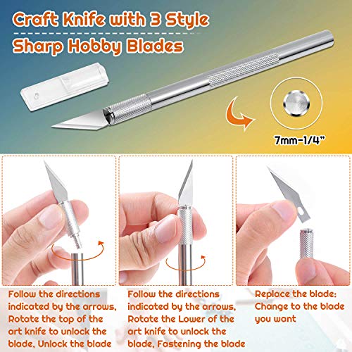 Sharp and Durable Art Knife for Precise Cuts – This craft knife kit consists of anti-skidding aluminum handle, 30 pieces fine point blades of 3 different types (4#, 11#, 16#) and safety cap. The SK-5 steel blades are very sharp that were packed in plastic case to keep the blades safe and lubricated, be careful when using it and replace it