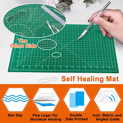 Cutting Mat for Craft – Cutting mat measures 12 x 18 inches, double side with different angles, inches and metric grids that will greatly help the cutting process. Cutting mat for craft featuring with self-healing to protect your craft knives, straight cutting blades, rotary cutter and work surface