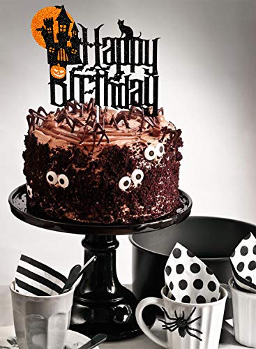 What you will get – 1Pcs Black Glittery Happy Birthday Cake Topper.These Cake Topper is The Perfect Decoration Welcome your friends to your Halloween Theme Birthday Party.