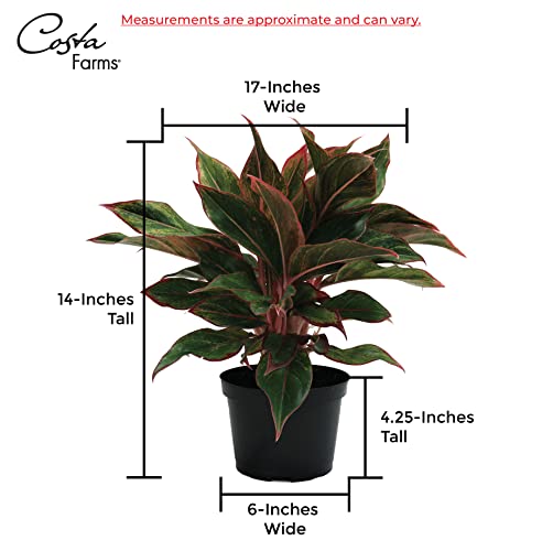 The Aglaonema is an easy-to-grow houseplant with bold, colorful leaves; ideal for tabletops, desks, and shelves. It adds color and texture to any space making it excellent as home decor accent or for gift giving. Bonus! It helps to purify the air! It grows best near a sunny window, place it next to an East or West facing window. Water when the top couple inches of the soil are dry (about once a week) and be sure all excess water drains away. If the container does not have holes, use approximately 1 cup of water, adjust as needed for your environment. Do not let the Aglaonema sit in water or overly soggy soil. The height at shipping is approximately 14 inches tall, measured from the bottom of the pot to the top of the plant. The Aglaonema ships in a lightweight, 6-inch decor planter; made from a 100% recyclable #5 material. To avoid water spillage, this container does not have holes. The Aglaonema is a slow grower depending on its environment and is hardy in USDA Zones 10-11. Give it a boost right through the warm months of Spring and Summer with a general-purpose fertilizer that is formulated for house plants. Follow the instructions on the fertilizer package for the most productive use. When the plant out grows the current container, it’s time to repot. To repot the plant, gently remove it from its current container and place it into a quite larger container. Fill in any empty spaces with new and fresh soil and water thoroughly. Take into account of third-party sellers; other companies try to imitate our quality. There are no other authorized Costa Farms sellers. Look for ships from & sold by to be sure you’re getting our premium plants. Plants are living things; each one is quite different, so the plant you receive may vary from the photo. Our growers hand-pick the healthiest and highest-quality plants. We package our plants for shipment with great care so they are going to arrive at your home ready to be displayed. Shipped fresh from our farm to you, Costa Farms is passionate about delivering happy, healthy, beautiful plants. Costa Farms plants aren’t intended for human or animal consumption. Keep out of reach of children and pets. We’re unable to ship this item to: AK, AZ, CA, GU, HI. Send us your feedback at questions@costafarms.