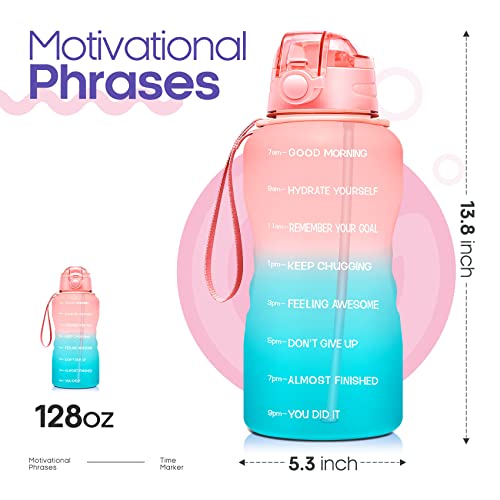 【1 Gallon Large Capacity】Large 128oz capacity ensures you enjoy one full water bottle/jug without having to refill it frequently.Featured with measuring scale help you check the actual amount of water intake easily and clearly.Wide-mouth opening is easy to fill with ice cubes and clean.