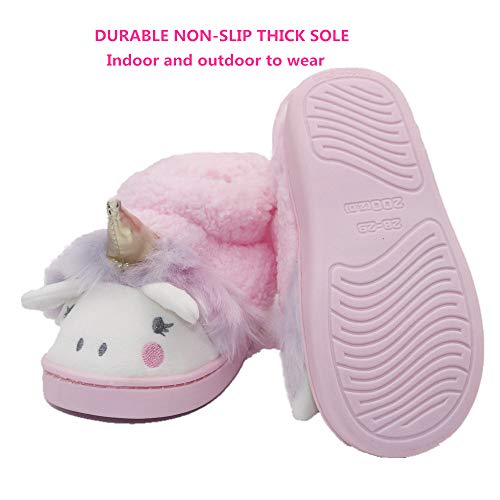 DURABLE&NON-SLIP THICK SOLE: The fluffy unicorn slippers feature reinforced rubber sole for maximum comfort and grip, adapting to any indoor outdoor surface. Lightweight non-slip thick sole effectively prevent little feet from suffering discomfort on a chilly floor.