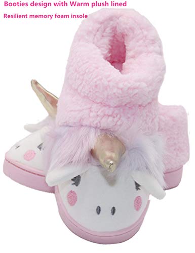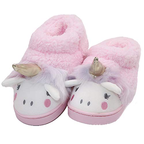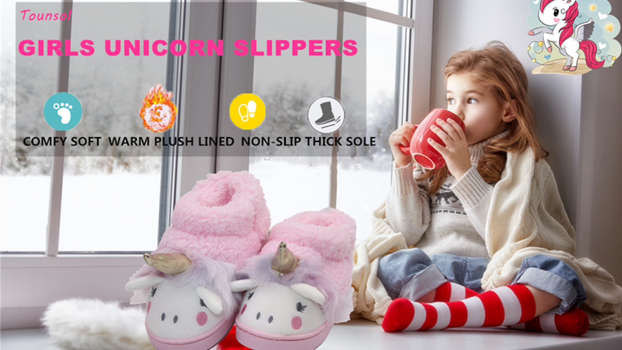 CUTE UNICORN DESIGN WITH SOFT PLUSH UPPER: The girls slippers which are patterned with a lovely unicorn will endear you at first sight. Our warm winter girls house slippers is lightweight, soft, warm and comfortable, it can adapt to your kids style easily.