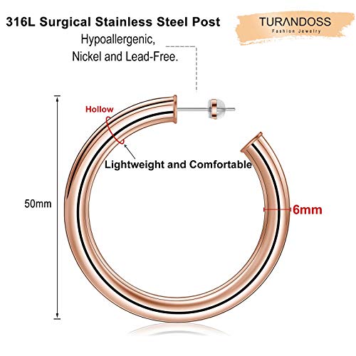 Size: 6mm Thick 50mm / 2 Inch Diameter Rose Gold Plated Hoop Earrings. This Thick Hoop Earring is crafted to be lightweight. It’s very comfort to wear /take off, it can be your all day Earrings.