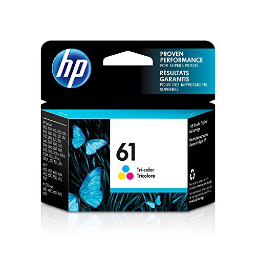 HP 61 Ink Cartridge, Tri-color (CH562WN) for HP Deskjet 1000 1010 1012 1050 1051 1055 1056 1510 1512 1514 1051 2050 2510 2512 2514 2540 2541. HP 61 ink cartridges work with: HP Deskjet 1000, 1010, 1012, 1050, 1051, 1055, 1056, 1510, 1512, 1514, 1051, 2050, 2510, 2512, 2514, 2540, 2541, 2542, 2543 2544, 2546, 2547, 3000, 3050, 3051, 3052, 3054, 3056, 3510, 3511, 3512 HP ENVY 4500, 4502, 4504, 5530, 5531, 5532, 5534, 5535. HP Officejet 2620, 2621, 4630, 4632. HP 61 ink cartridge yield (approx.): 165 pages. Up to 2x more prints with Original HP ink vs refill cartridges. Original HP ink cartridges: genuine ink for your HP printer. Ensure that your printing is right the first time and every time with HP printer ink: 61 ink. CHOOSE AN INK REPLENISHMENT SERVICE – Let your printer track usage and have ink delivered before you run out. Either reorder HP Genuine ink cartridges only when you need them through Amazon Dash Replenishment, or save up to 50% by paying for pages printed through HP Instant Ink. What’s in the box: 1 New Original HP 61 ink cartridge (CH562WN). Color: Tri-color.
