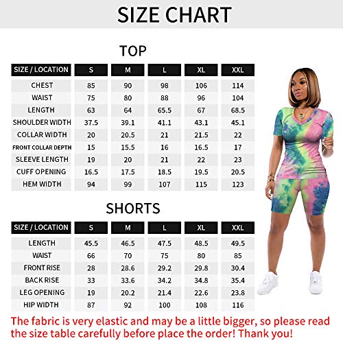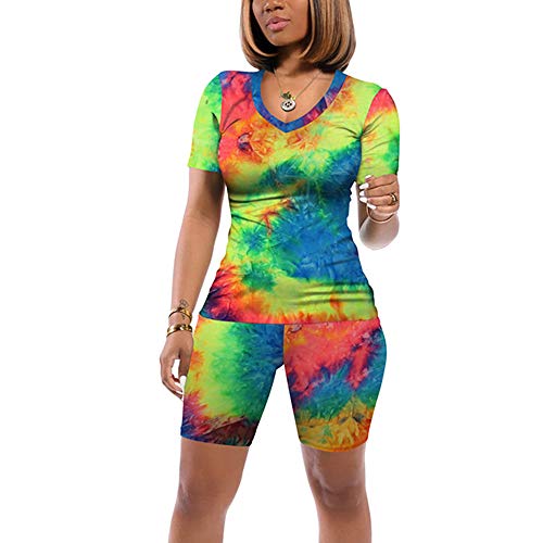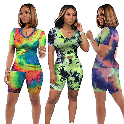 Features: Two-piece outfits tie-dye ladies suit, including a tie-dye V neck Tops and a tie-dye shorts.