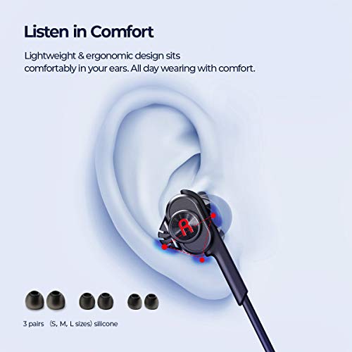 🎵【All Day Comfort】Improved ergonomic design combines a couple of ear tip options to stick securely in place and all day comfort. You’ll feel your music, not your headphones.