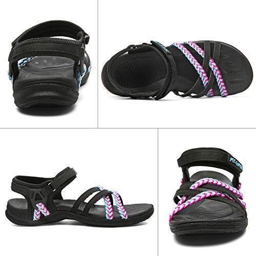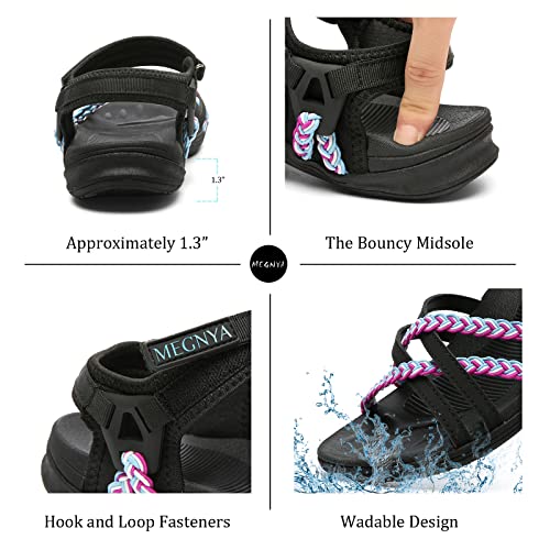 STYLISH & COMFORT== Women hiking Sandals designed with Rebound Footbed and Rubber Outsole for greater shock absorption. Adjustable sandals with quick drying Hook and Loop Straps, EVA midsole and Rugged all around foot protection design, effectively holds feet in place and prevents abrasions.