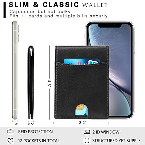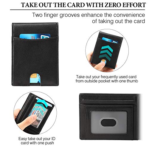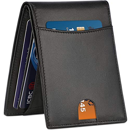 COMPACT & SLIM WALLET – Slim wallets for men in 4.3” x 3.2” x 0.5”, which is suitably compact and slim, yet spacious will carry all the essentials and still fit into a front or back pocket with ease without bulging out. Minimalist design and a practical interior give this masculine accessory enduring appeal.