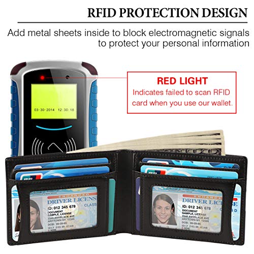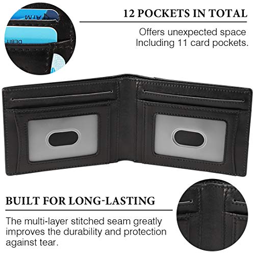 EXTRA SPACIOUS BIFOLD WALLET – With 9 slots for cards, 2 ID window and 1 full-length bill compartment, this is a wallet for the practically-minded; 2 ID window and 1 outer practical slot, both are with finger groove for easy taking your card out with a thumb slider. Other 8 card slots make sure the slim wallet is able to carry all your essentials.
