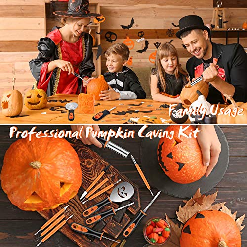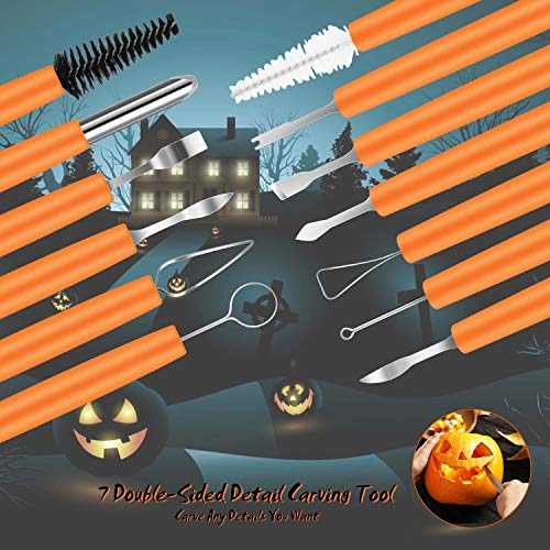 🎃MULTIFUNCTIONAL CARVING: Our pumpkin carving tools are suitable for family reunion, large parties, Halloween carving competitions, etc. Can carve other kinds of vegetables and fruits except pumpkin. Double-sided carving tools can engrave smaller objects. Make items more delicate and exquisite.