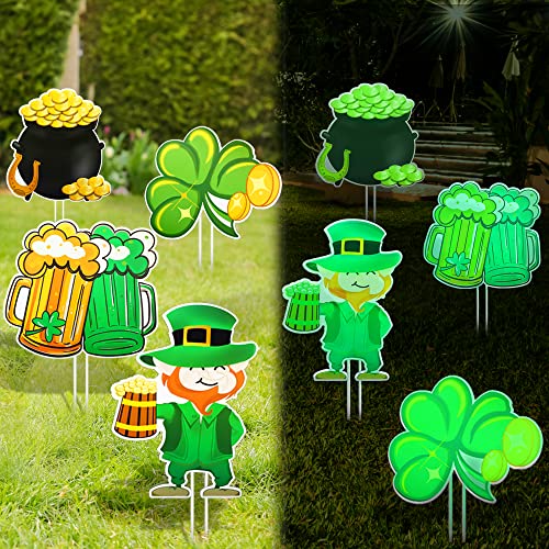 NEW DESIGN :The decorations in this St. Patrick’s Day yard are designed in clover/saint patrick/beer/money jar and have a reflective effect at night. Make sure the day sunshine is sufficient.