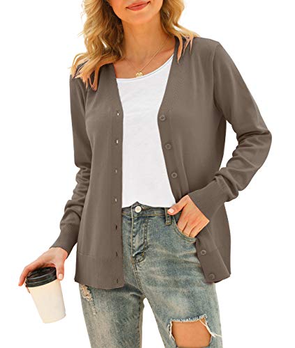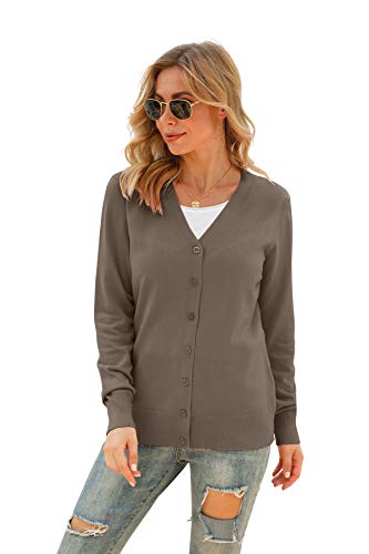 Women Sweaters Features: slim Fit, V neck, button down front, button closure, long sleeve, sweater cardigan. This lightweight cardigan with a fitted design that flaters your figure, classic solid color and knit for a unique style, you’ll feel confident and comfy in this solid color cardigan. This sweaters cardigan are popular with modern women of all ages for daily fashion look.