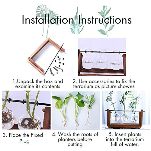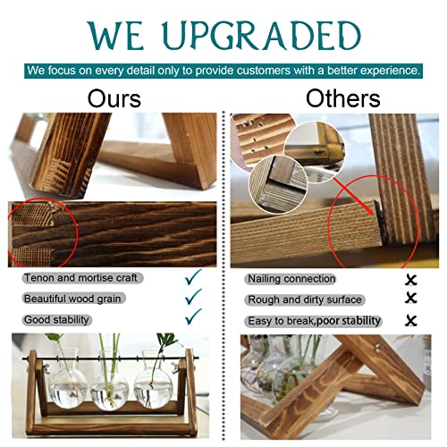 ✿ Perfect combination of natural wood and clear glass- Frame is made of nature wood, mottled surface; 5 bulb terrariums are made of High boron silicon heat resistant glass.(Not easy to be broken).Great for floral arrangement, home decoration as well as various gift ideas.